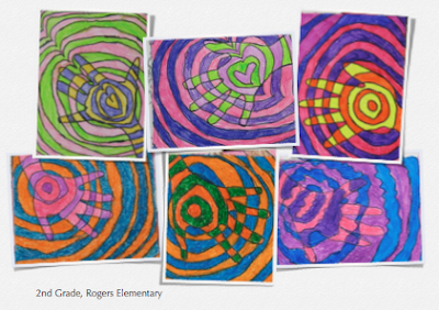 I used this project for our 2nd grade for the fundraiser. I was going to do a warm and cool color study with it but decided last minute to just let them do whatever for the first project of the year. I love the way they turned out and I know they will look great made into products because they are so colorful! Thanks to Art Projects for Kids for this idea!