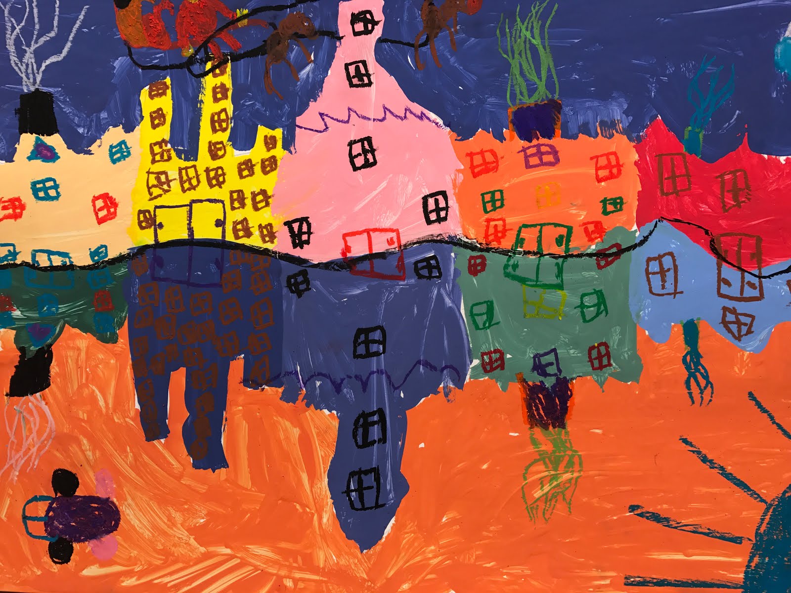 Now we are on class number four. The painting is done and it's time to add the details. I gave students oil pastels to finish their work.